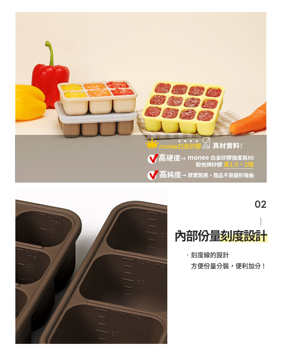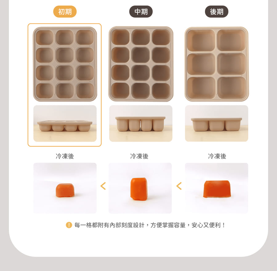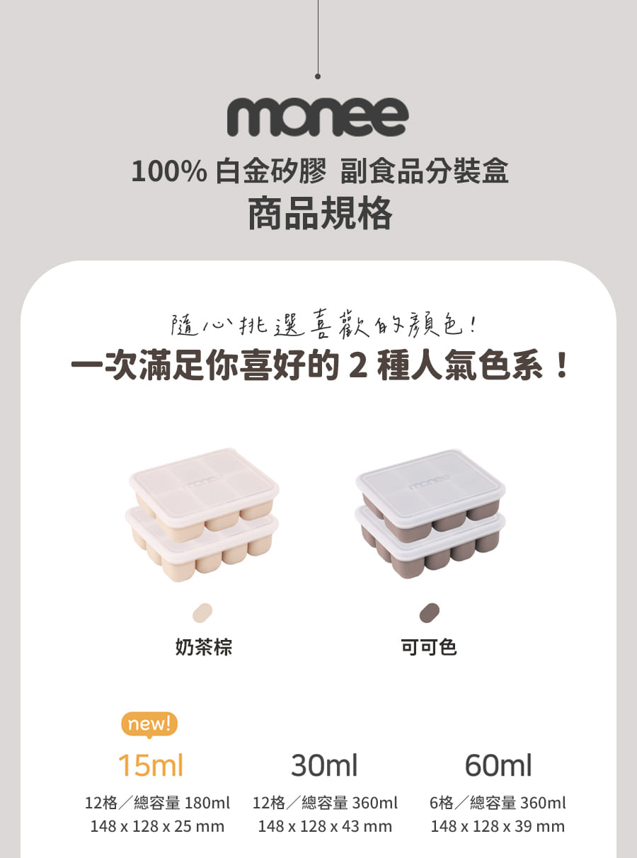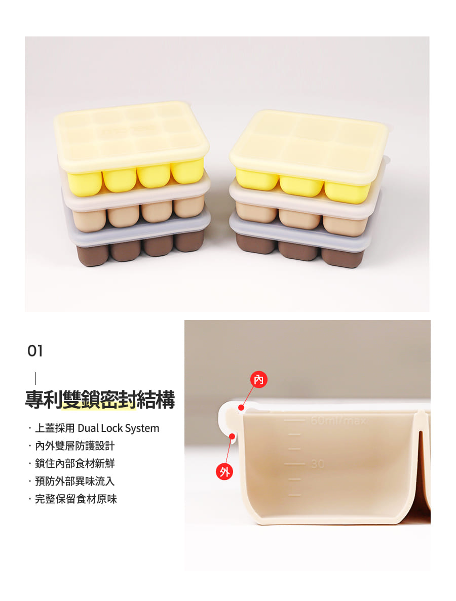 韓國副食品分裝盒,共有3種尺寸,小菜佐料、斷奶期副食品等皆可廣泛使用,保鮮省時,底部按壓即可快速取出冷凍冰磚,密封設計可有效隔絕氣味,確保食物新鮮,更是製冰、製作點心等料理小幫手,不同容量可供日常變化使用。